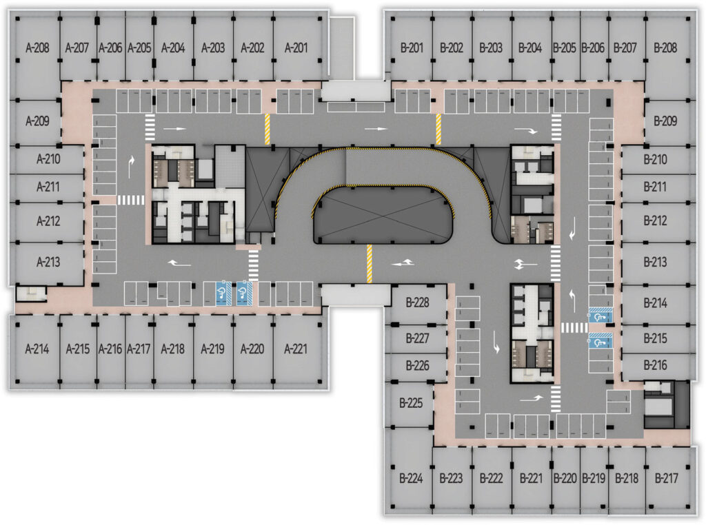 총 1,390대주차 지하2층 전층 주차장의 압도적 주차공간으로 주차 스트레스 완전 해소